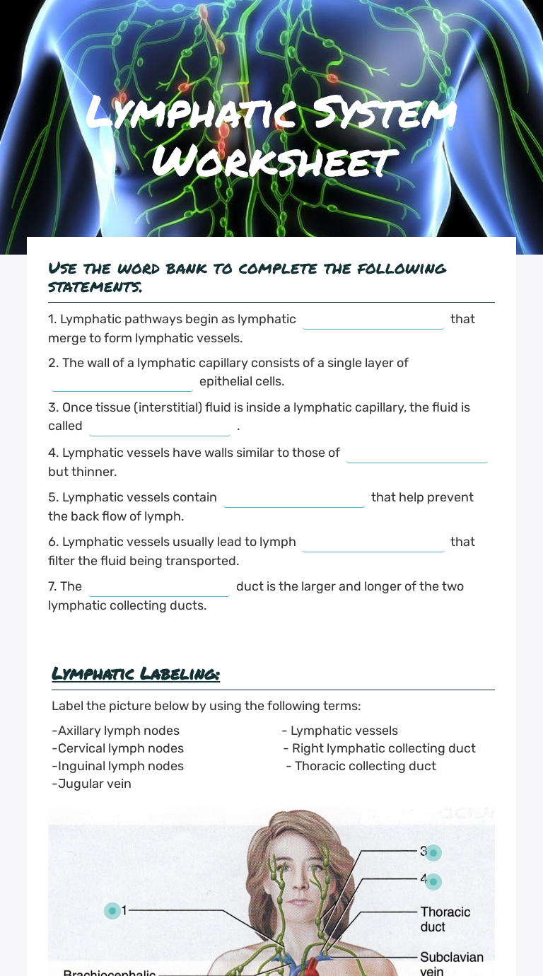 Lymphatic System Worksheet. T F vii.