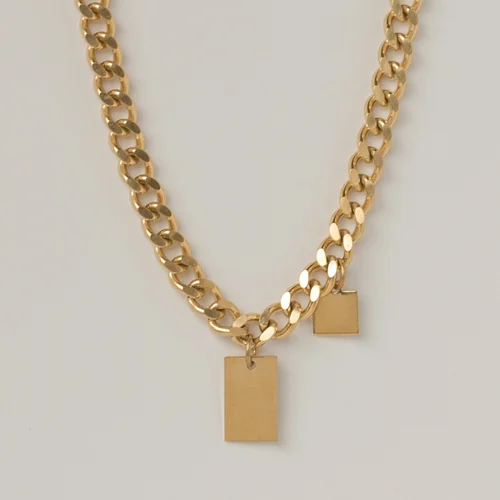 Wilmington North Carolina Area Stylist Che Bella Boutique Apr 2014 - Sep 2017 3. Gold fill chain with gold plated brass engraved card pendant.