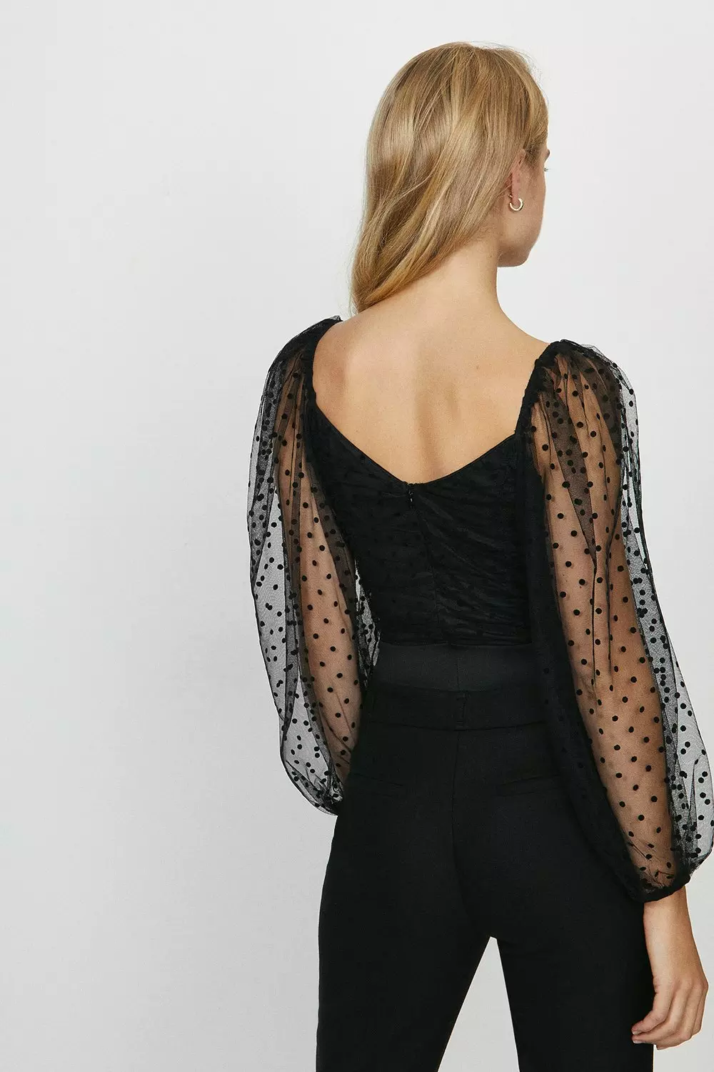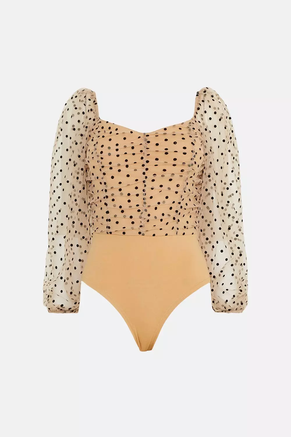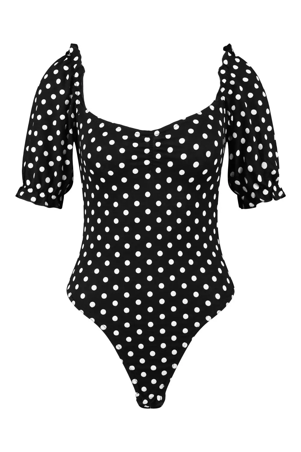 Team this with jeans and mules for the perfect garden combo. Length measures 28 with a 30 bust. Get notified when its back in stock. White Polka Dot Rib Mesh Sleeve Bodysuit. Get notified when its back in stock. Attached thong bottoms have two snap closures. PREORDER- SHIPS AT THE END OF APRIL. Polka Dot Contrast Mesh Puff Sleeve Button Decor Skinny Bodysuit. Click here to find out about Polka Dot Puff Sleeve Bodysuit from Boohoo part of our latest Sale Tops collection ready to shop online today.
